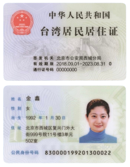 The left image is a sample of TaiBaoZheng (Mainland Travel Permit for Taiwan Residents).