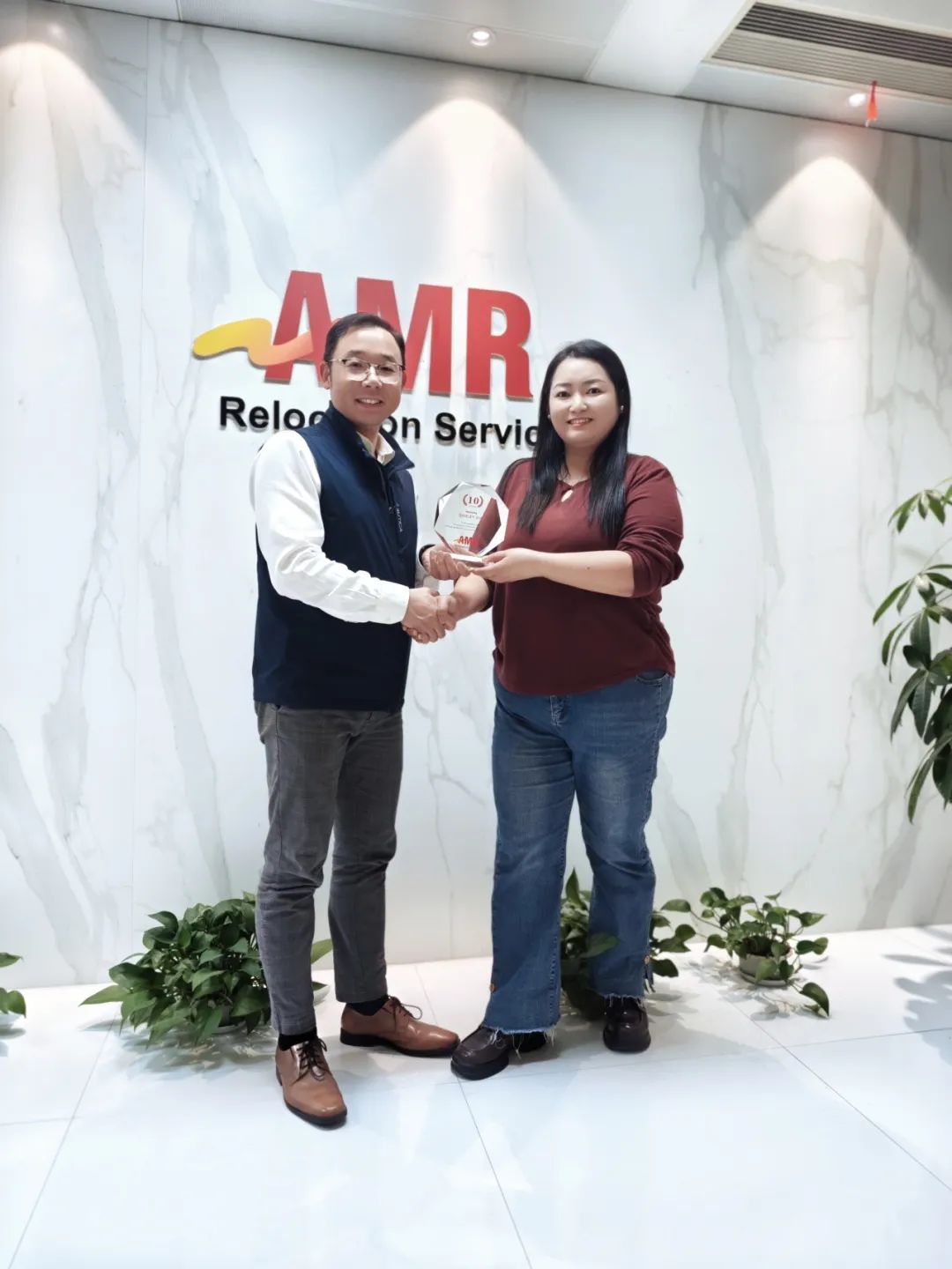 今天我们为三位兢兢业业的员工颁发了 “十年长期服务奖”,以表彰她们从 AMR 创立以来一如既往的辛勤工作和卓越表现。